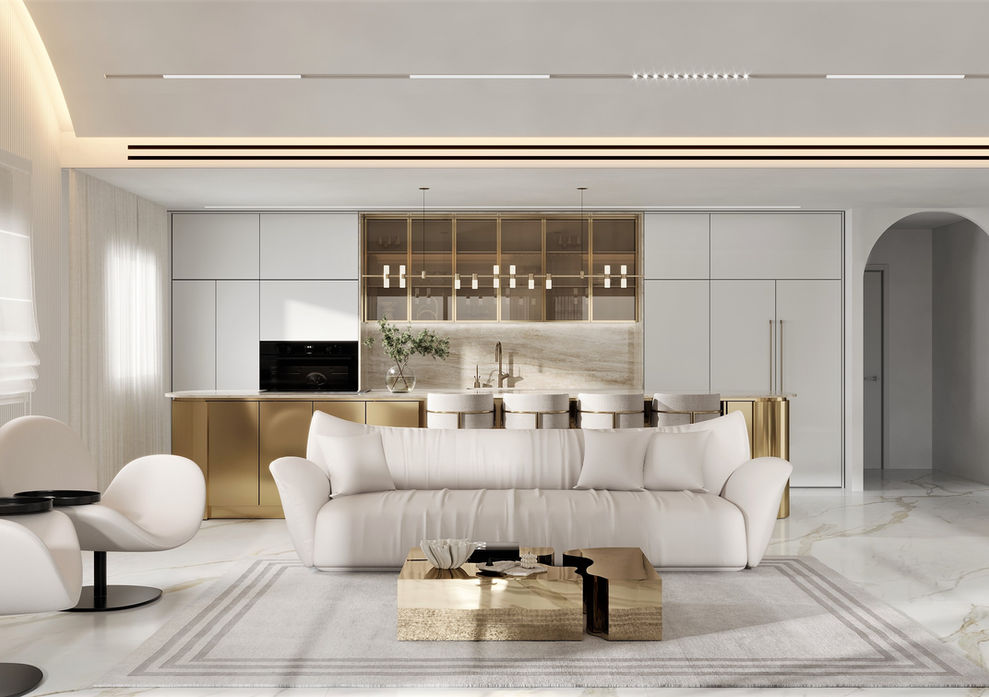 הפנטהאוז עוצב כקונספט של ״קשת הזהב״ בתכנונו האדריכלי נמצא אווירה המבוססת על אדריכלות נוף אותנטית, שמשתלבת בסינרגיה מושלמת עם הנוף והאבן הירושלמית שהיא חלק מהנוף בירושלים, בחלל המעוצב שיצרנו שילבתי בין הסגנון האותנטי המורגש היטב באוויר (תקרת קשת קמוּרה), לבין עיצוב מודרני שהמאפיינים של סגנון זה הם; חללים מוארים וגדולים, חלונות גדולים, קשתות בחלל הבית, כל זאת ועוד קיבלו ביטוי בשפה עיצובית ברורה במטרה להכניס את החוץ אל פנים הבית ולענות על בקשת המשפחה, שביקשו בית במראה יוקרתי, לצד אלמנטים ייחודיים ושילוב של חומרים, כל זאת במינונים מדויקים ובמראה נקי.